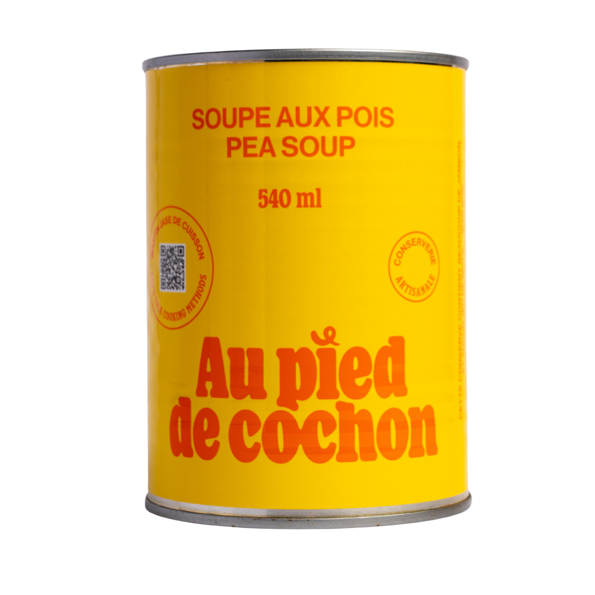 Porc, pois, oignons, carottes, eau, céleri-rave, romarin, thym, ail, sel, sucre, érythorbate de sodium, nitrite de sodium.